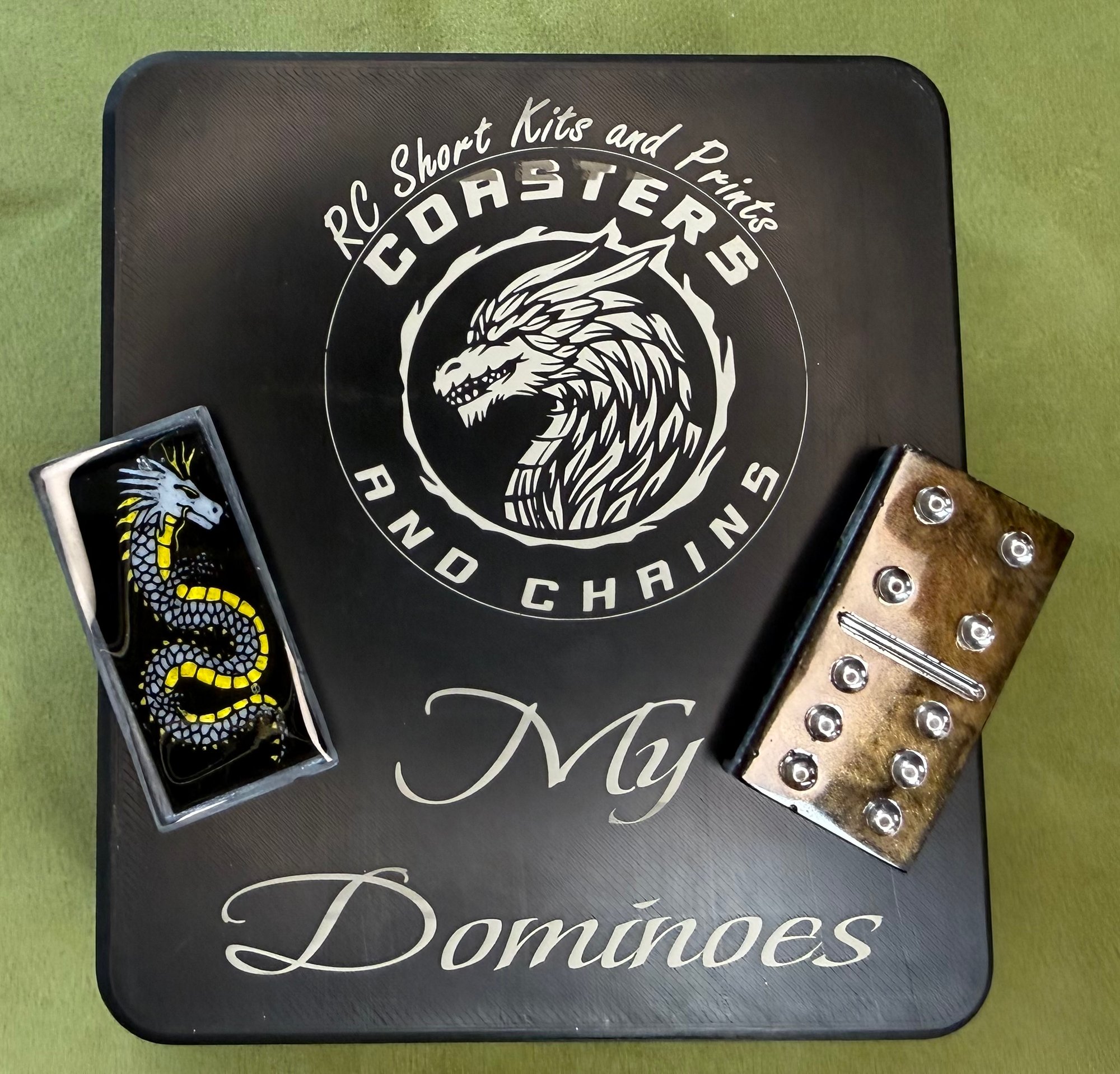 Resin Dominoes hand painted with a carrying case. Case can be personalized or left as is, no extra charge for personalizing. Comes in a variety of colors, or a set can be made to a color of your choosing. These make great gifts and easy to carry around and store.