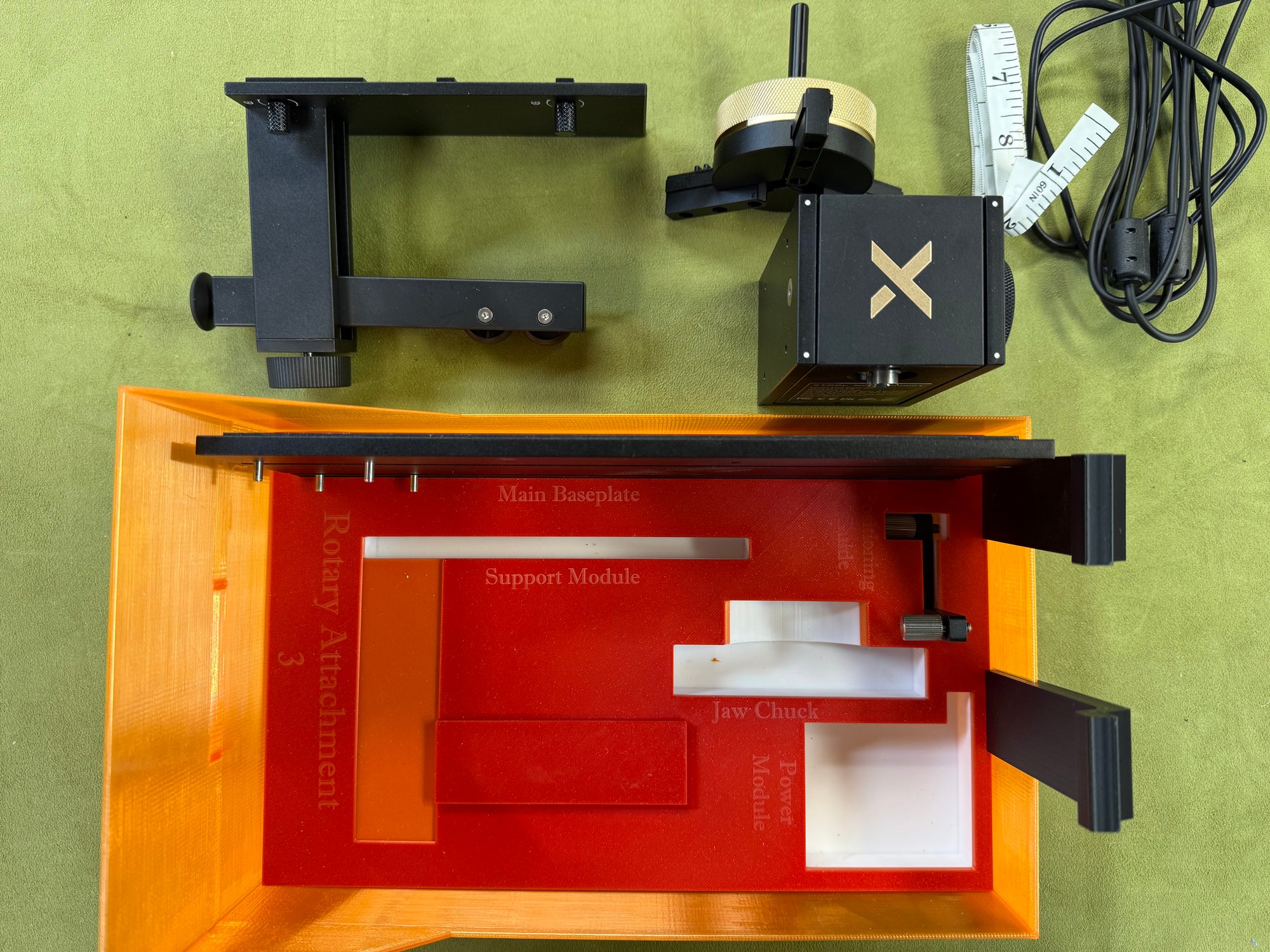 These are the optional trays for the Xtool Base cabinet with side drawers. There are 3 trays in total, one for the top, which holds the magnetic parts and rollers for the RA3 and the cutting plate. The two lower drawer trays hole the RA3 base parts and the Inner engraving lens and stand for the UV.