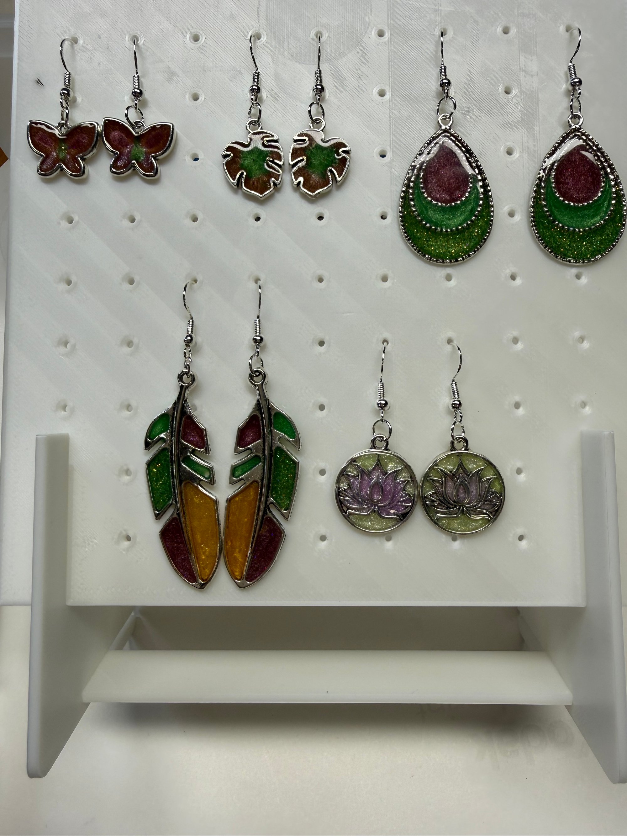 Hand laid Resin Earrings with metal Frames, no two pair are the same, slight variances since each pair is made by hand and not in big batches like what you find in all the stores.