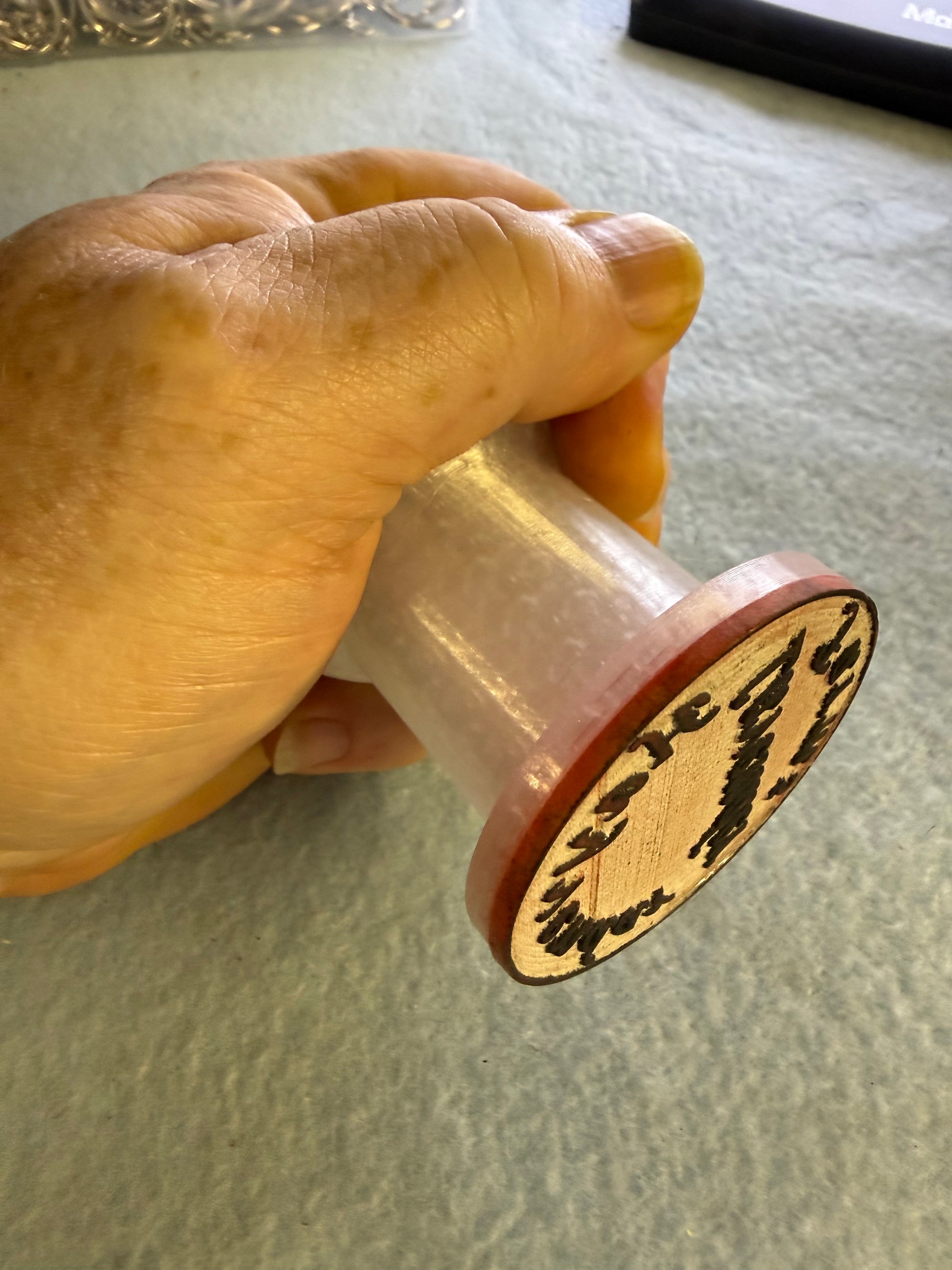 Custom made rubber stamps with handle. Can be a Logo, company name, phone number, what ever you need to stamp, it can be made here. Handles are printed to match the stamp and it fits nicely in the hand for fatigue free stamping all day. Prices start at $9.99, estimates available upon request.